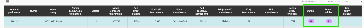 Pozycja będzie widoczna ze statusem AU (Autorejestracja)- status ten nie oznacza jeszcze, że zlecenie zostało zatwierdzone do produkcji.