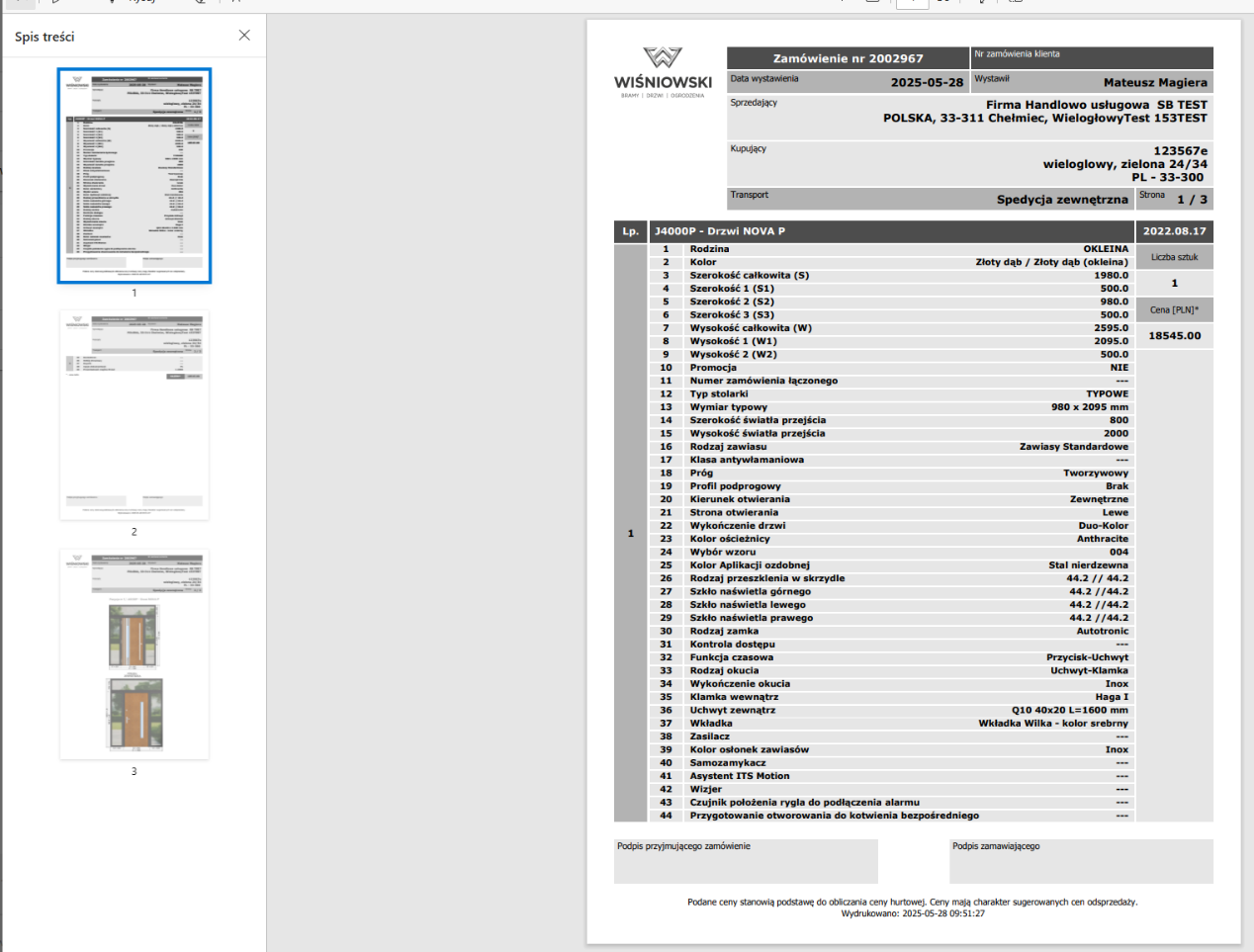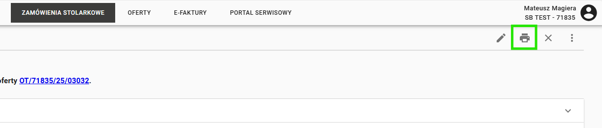 Takie zamówienie możemy również wydrukować z poziomu pozycji. W celu wydrukowania zamówiona należy kliknąć w ikonę wydruku