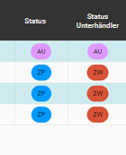 Der Status WA wird immer für den Unterhändler (die Niederlassung) angezeigt. Es handelt sich um einen Informationsstatus, der keine Aktionen mit der Bestellung zulässt - ZW – Verifiziert – bedeutet, dass die Bestellung vom Händler für die Produktion freigegeben wurde – im Falle einer Stornierung sollte so schnell wie möglich telefonisch oder per E-Mail Rücksprache mit dem Werk gehalten werden.