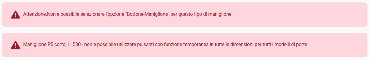 Se selezioni un'opzione che non è possibile applicare, appariranno errori rossi - restrizioni. Il contenuto dell'errore contiene informazioni sul problema.