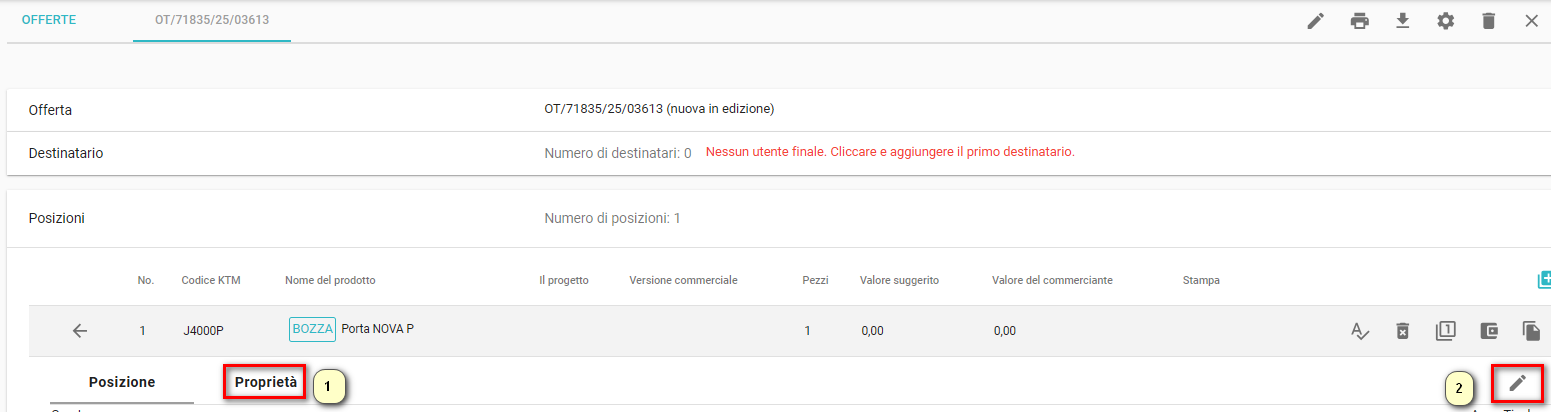 Se si desidera modificare un'offerta già creata, è necessario entrare nei dettagli dell'offerta: