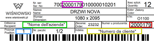 - Colore blu – numero della posizione dell'ordine in questione.