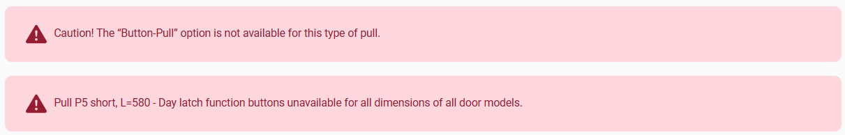 Каждая дверь может быть расширена дополнительными опциями. Большинство из них будут показаны на визуализации слева. Доступность и видимость опций автоматически меняются в зависимости от введенной конфигурации.
