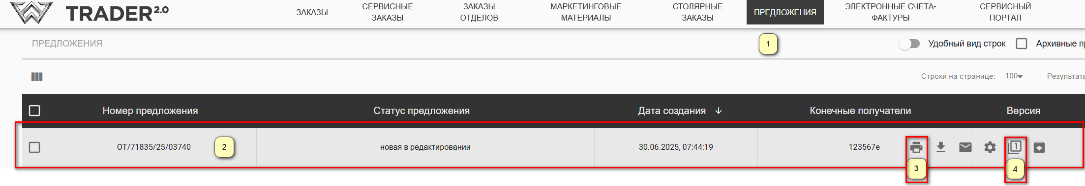 Это позволит Вам вернуться к редактированию предложения (обратите внимание, что Вы сможете вернуться к редактированию заказа только в том случае, если из данного предложения не сформировали заказ)