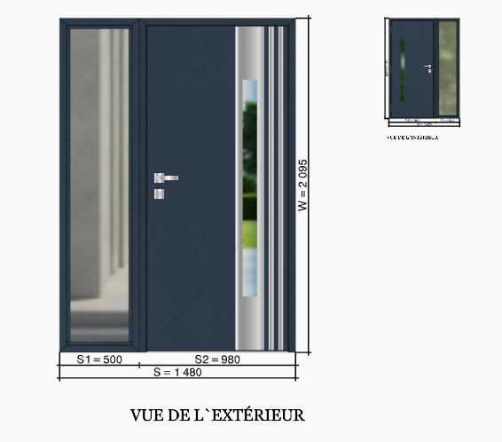 - NOVA DPG – porte NOVA avec partie fixe droite + imposte haute,