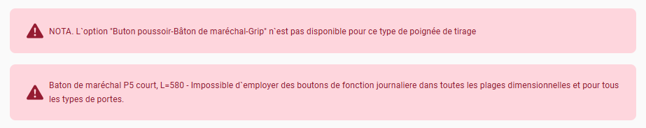 En cas de sélection d'une option qui n'est pas applicable, des erreurs de restriction apparaissent en rouge. Le contenu de l'erreur vous indiquera d'où vient le problème.