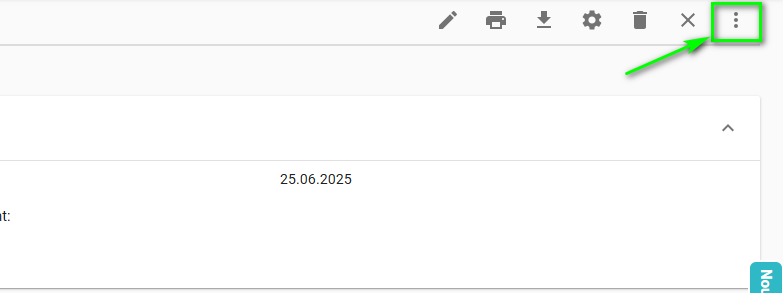 Une fois le processus de conception terminé, il faut générer une commande à partir du devis. Pour ce faire, il faut cliquer sur l'icône des trois points dans le coin supérieur droit.