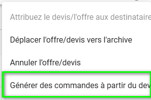 Dans la fenêtre qui s'affiche, sélectionnez l'option Générer des commandes à partir du devis.