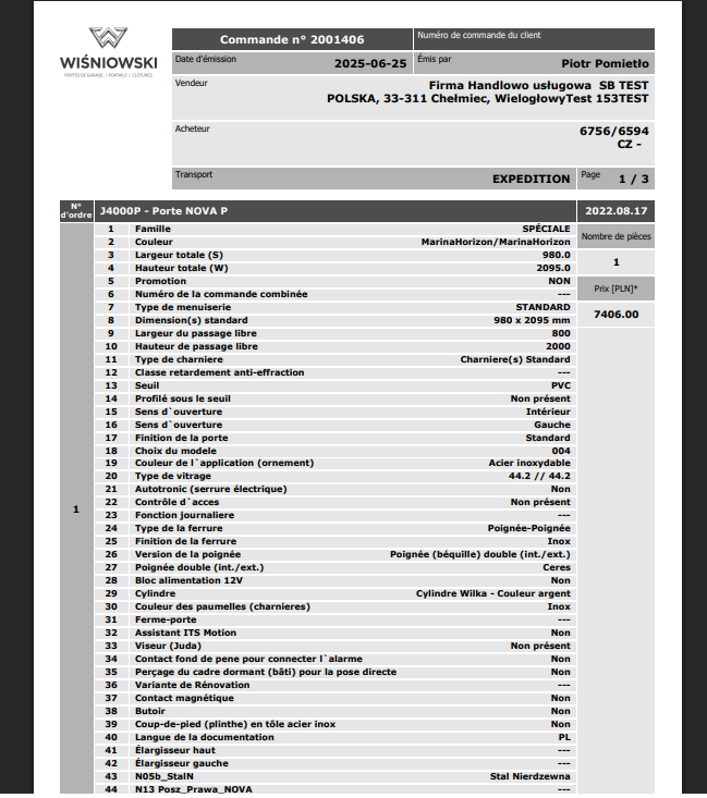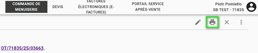 Une telle commande peut également être imprimée à partir du niveau de la position. Pour imprimer votre commande, il faut cliquer sur l'icône d'impression.