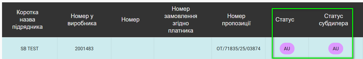 Позиція буде зі статусом AU (автореєстрація) – це не підтвердження для виробництва.
