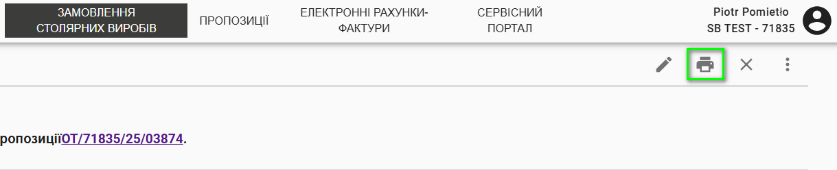 Таке замовлення також можна надрукувати з рівня позиції. Щоб надрукувати замовлення, натисніть на іконку друку