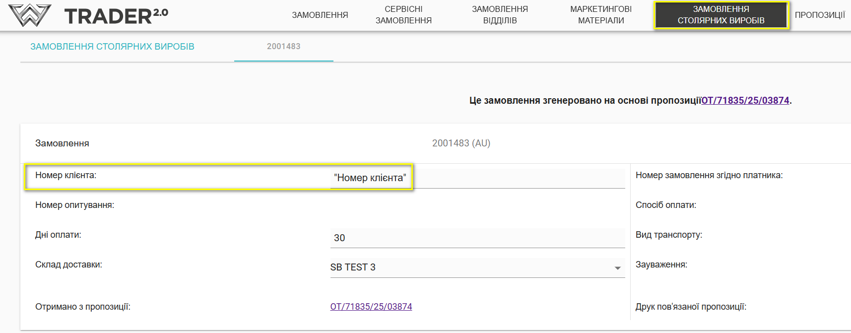 UA - Підготовка пропозиції та замовлення у вкладці «Столярні вироби»