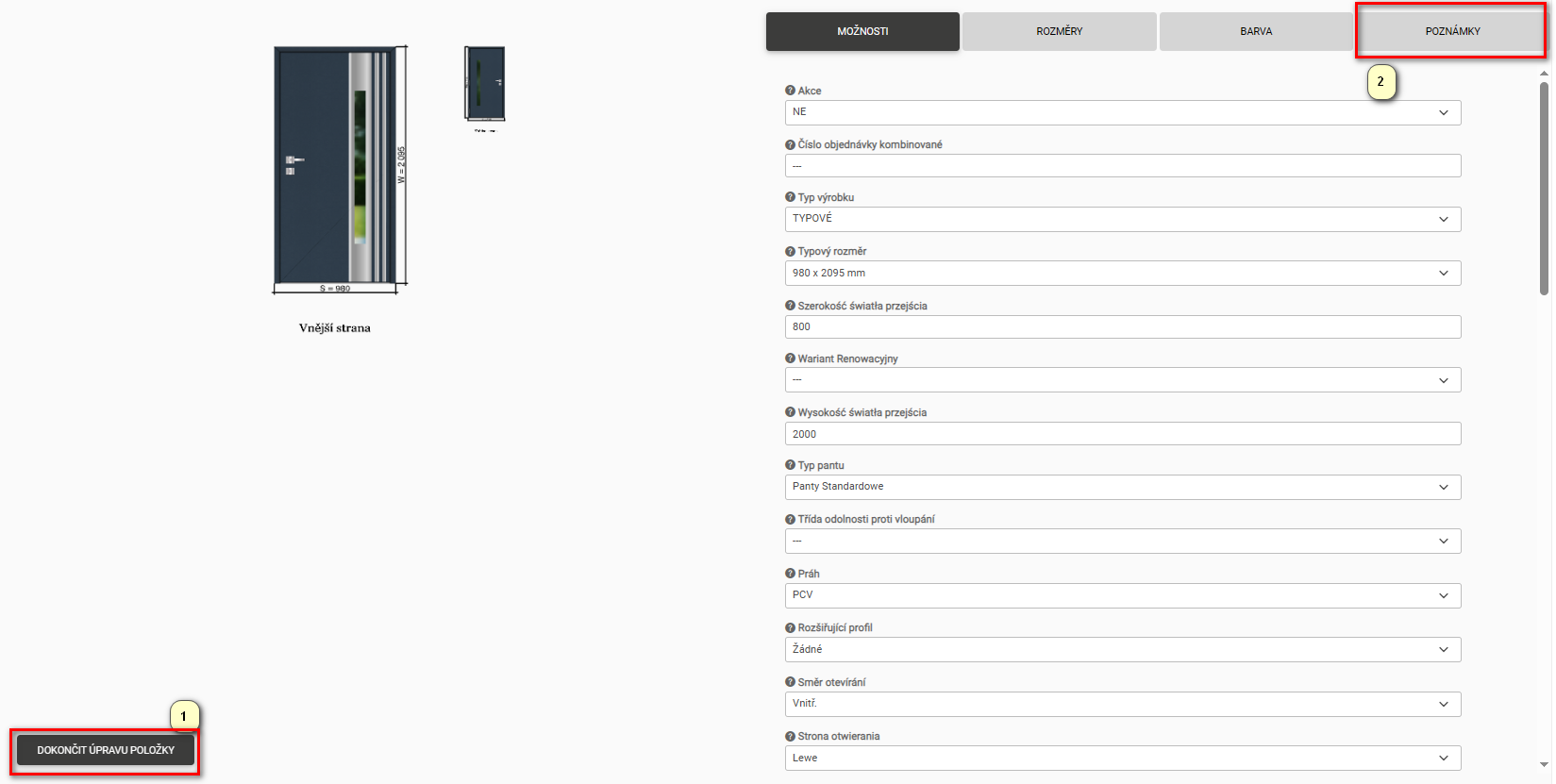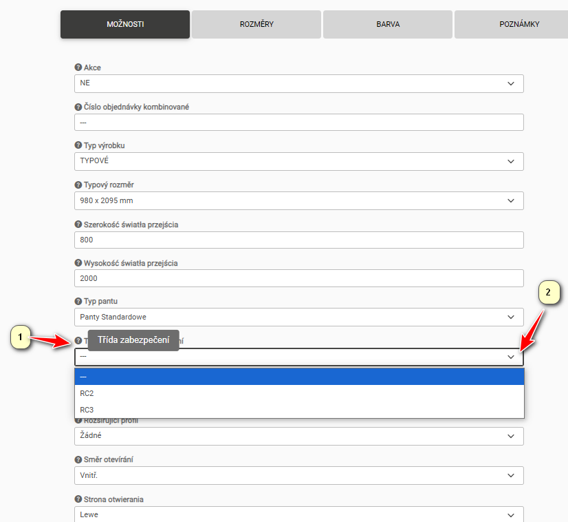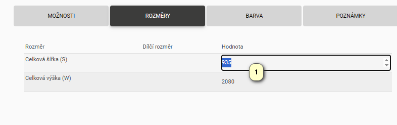 Ad.1 Pro ovládání rozměru je nejprve nutné nastavit možnost Typ dveří na – Netypické.