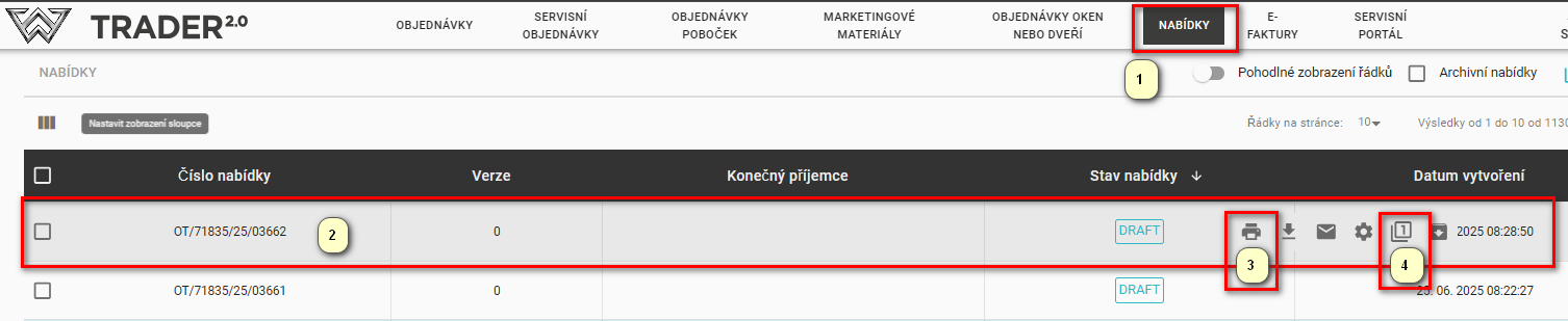 Tato akce umožní opětovné vrácení do fáze úpravy nabídky (Je nutné mít na paměti, že vrátit se k úpravě objednávky lze pouze v případě, že ještě nemáte vygenerovanou objednávku z nabídky).