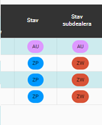 Status WA se zobrazuje vždy subdealerům (subdealer pobočky) má informativní charakter, neumožňuje provádět žádné akce spojené s objednávkou - ZW – Ověřené – znamená, že objednávka byla schválena do výroby dealerem, v případě zrušení je nutné co nejdříve kontaktovat továrnu telefonicky nebo e-mailem.