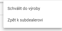 a) Schválit do výroby – způsobí změny v sloupcích Stav (ZW) a Stav subdealer (ZA)