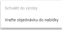 V případě, že v době pokusu o schválení objednávky do výroby je pole neaktivní, zobrazí se hlášení informující, že na objednávce se nachází položka s neaktuální verzi produktu a je tak nutné zrušit objednávku a vrátit se do nabídky. Následně je nutné postupovat analogicky, jak v případě aktualizace varianty produktu na nabídce.
