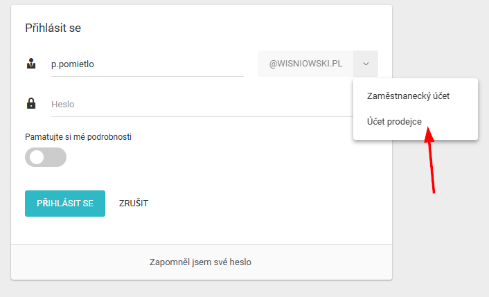 O: Při přihlašování se ujistěte, že jste ze seznamu vybrali správnou možnost.