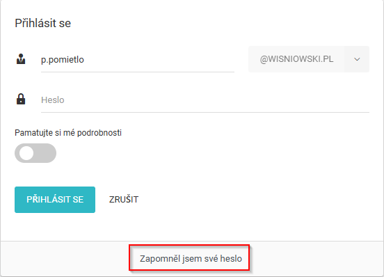 Na e-mailovou adresu přidělenou uživateli bude zaslána zpráva s odkazem na změnu hesla.
