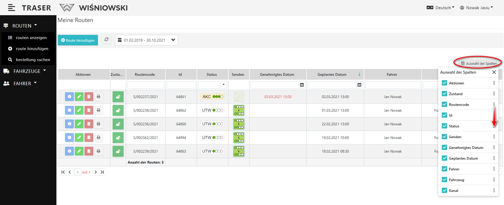 1. Wyświetl dowolną tabelę. Kliknij przycisk "WYBÓR KOLUMN". Następnie zaznacz/odznacz kolumny, które chcesz wyświetlać (Rys. 3.).
