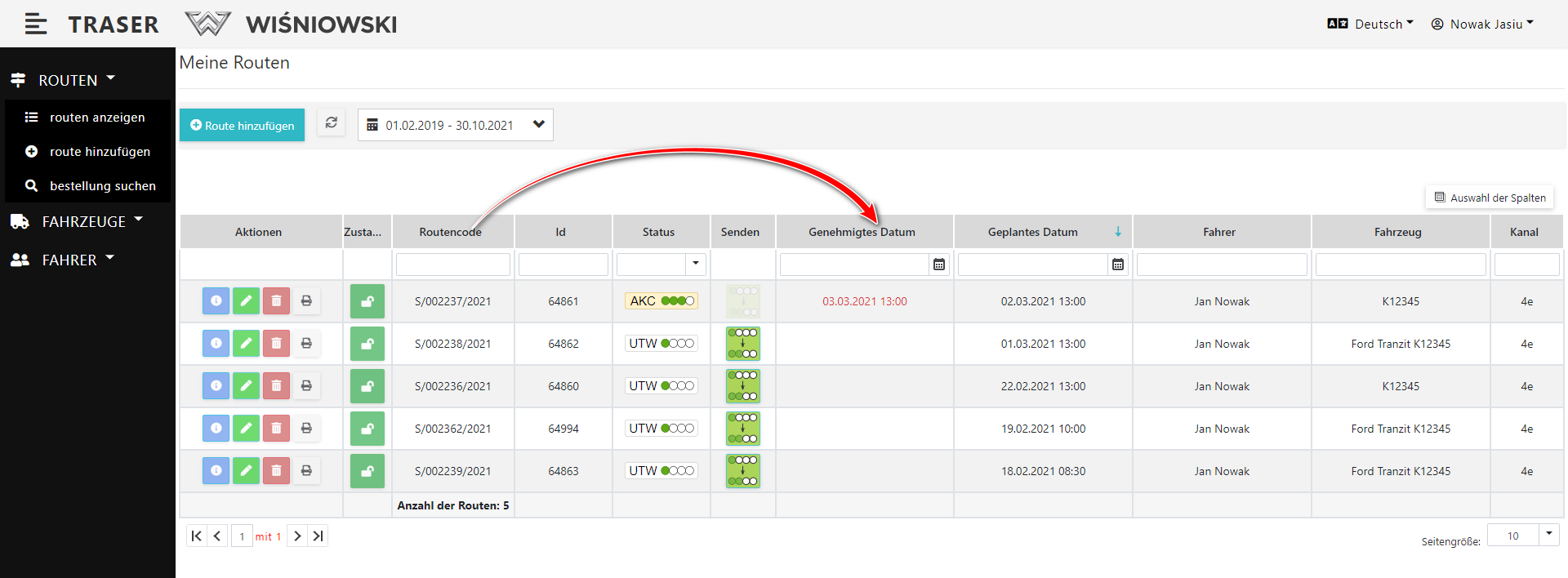 1. Wyświetl dowolną tabelę. Kliknij przycisk "WYBÓR KOLUMN", następnie przenieś myszką wybraną kolumnę w dowolne miejsce.