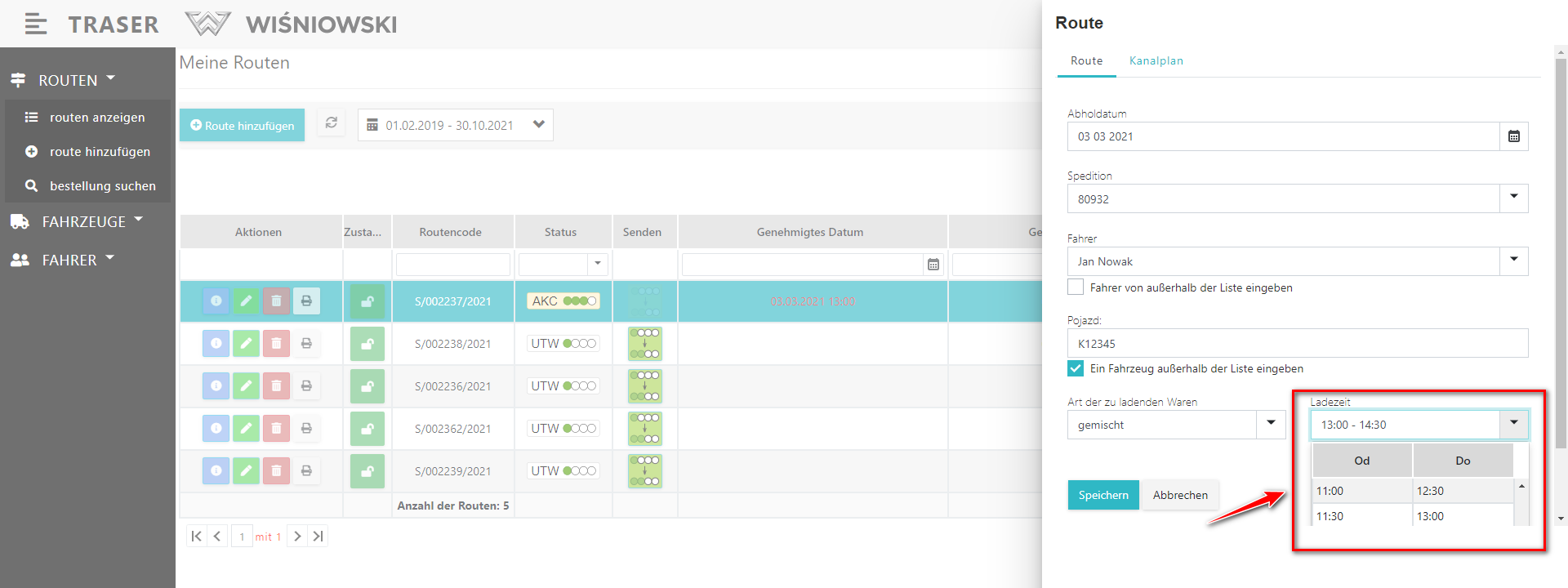 Po wyborze typu ładowanego towaru (a wcześniej daty odbioru i pojazdu), Traser sprawdza dostępność powiązanej Bramy Załadunkowej.