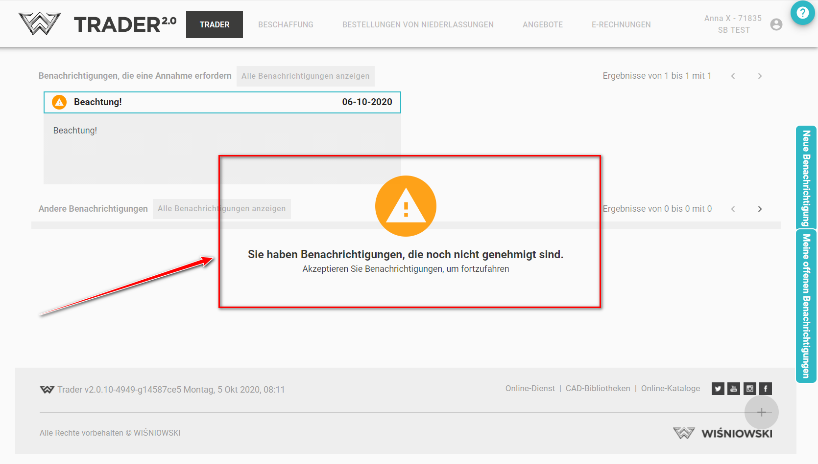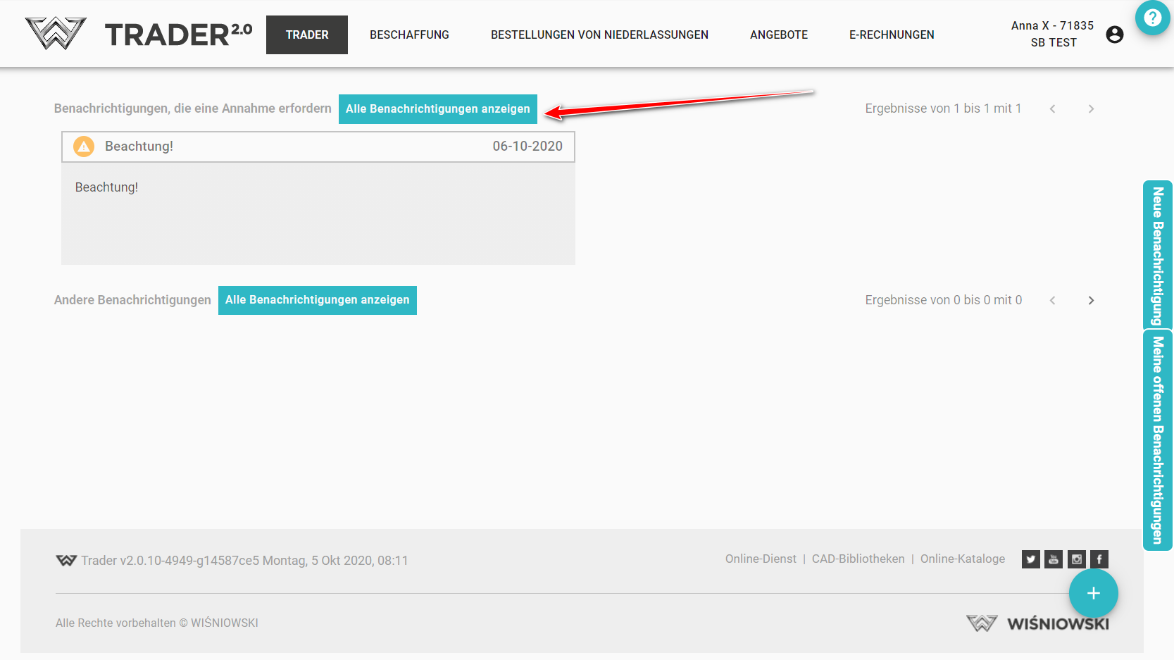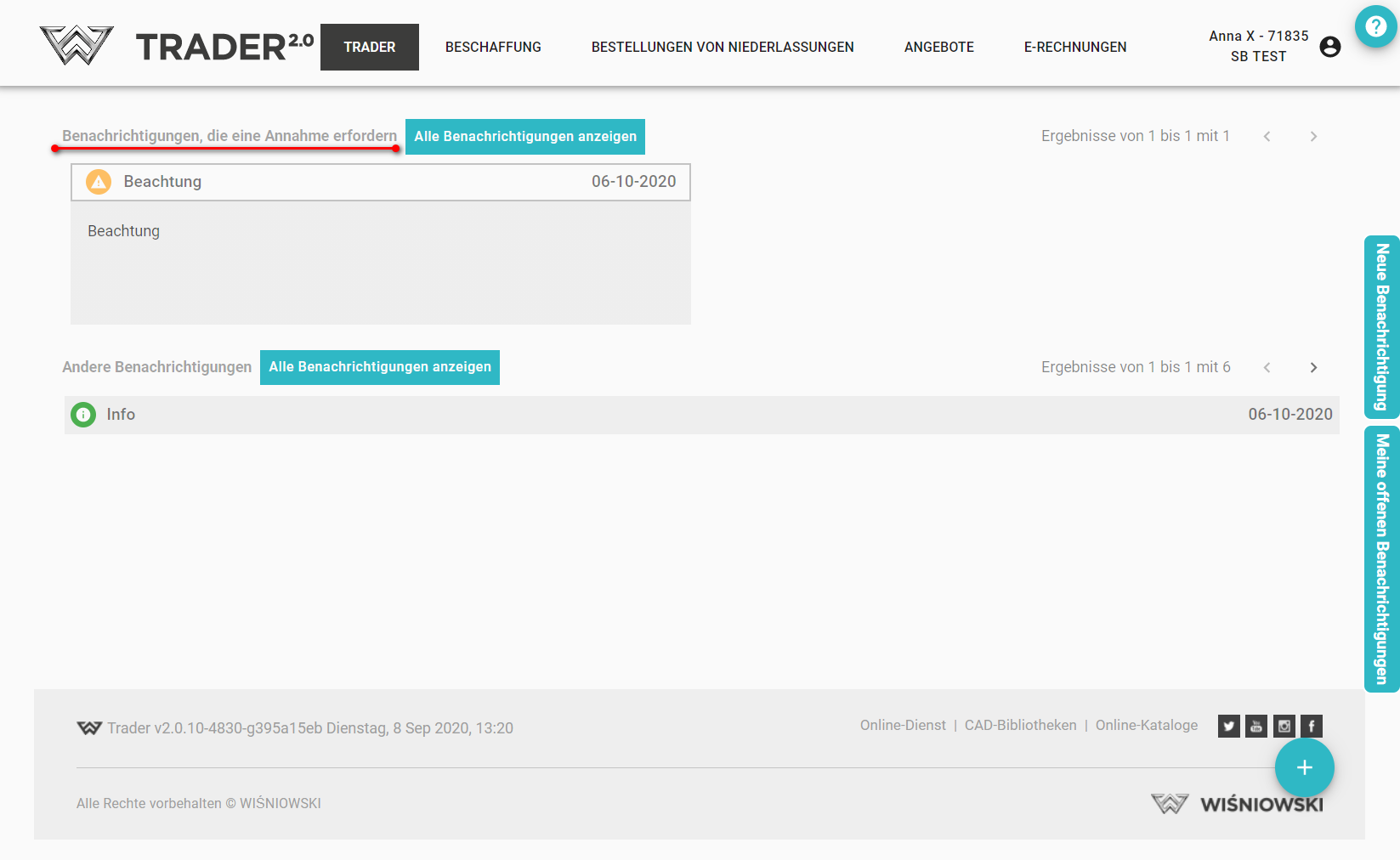 Nachdem Sie sich bei AW TRADER angemeldet haben, werden auf der Homepage Benachrichtigungen angezeigt, die von Fa. Wiśniowski veröffentlicht werden.