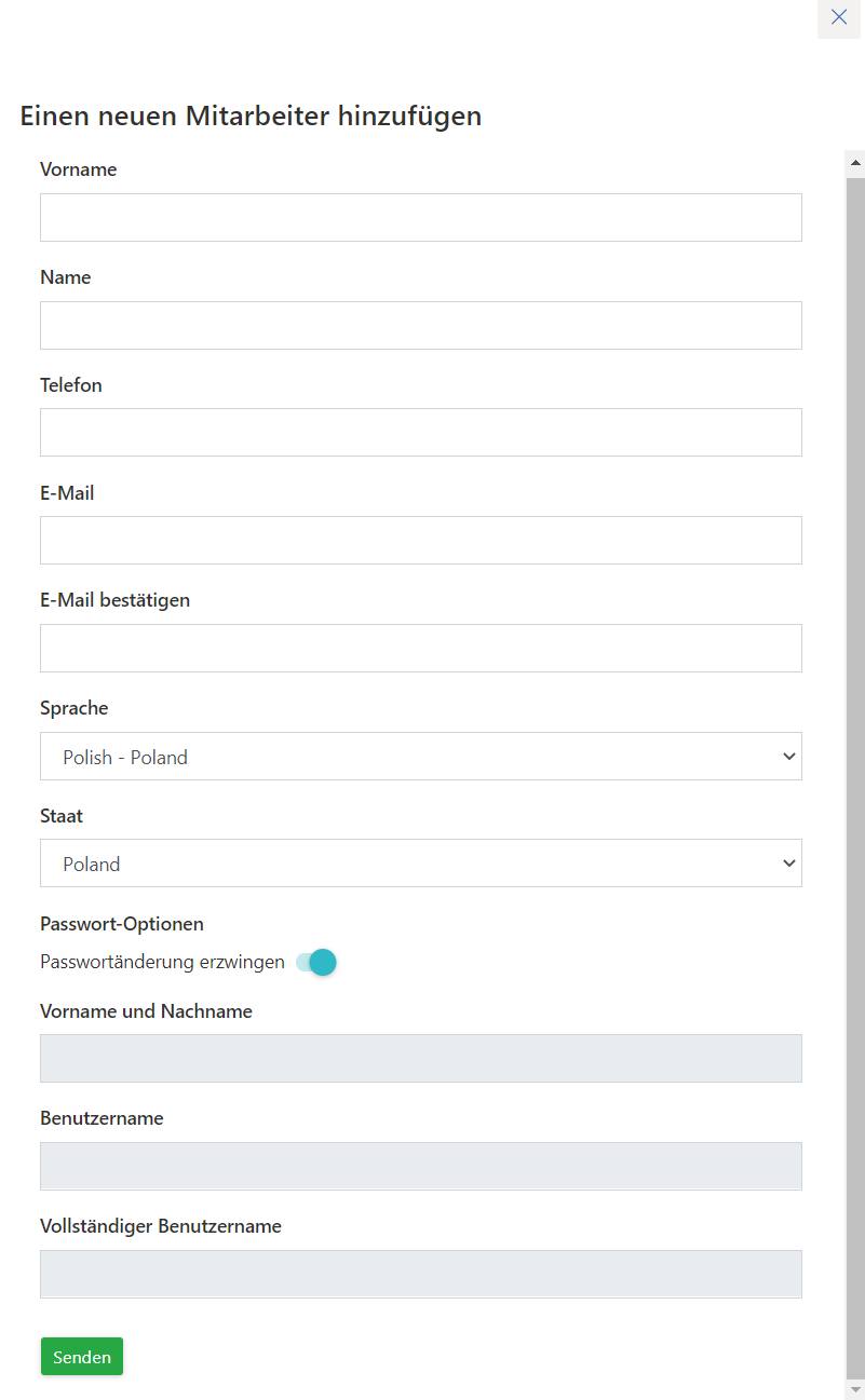 Um einen neuen Benutzer anzulegen, klicken Sie auf"+"