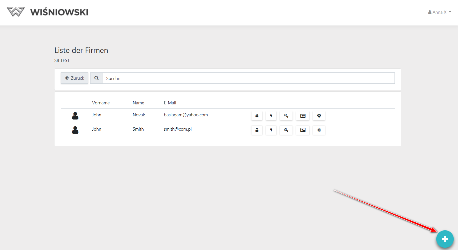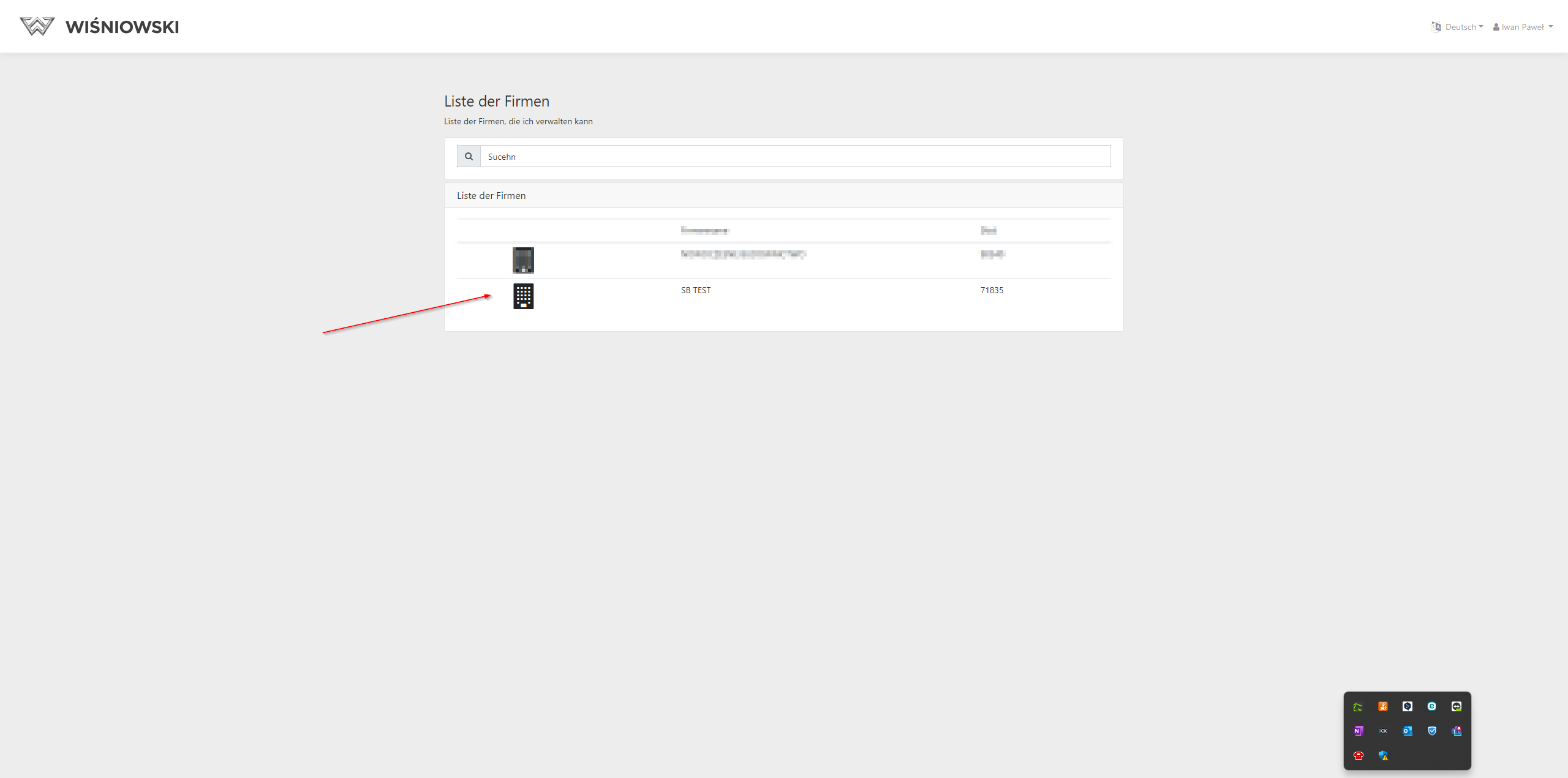 Nachdem Sie zur Seite des Administrationspanels gewechselt haben, sehen Sie eine Unternehmensliste. Wählen Sie das Unternehmen aus, in dessen Rahmen Sie die Benutzer und ihre Rollen verwalten möchten.