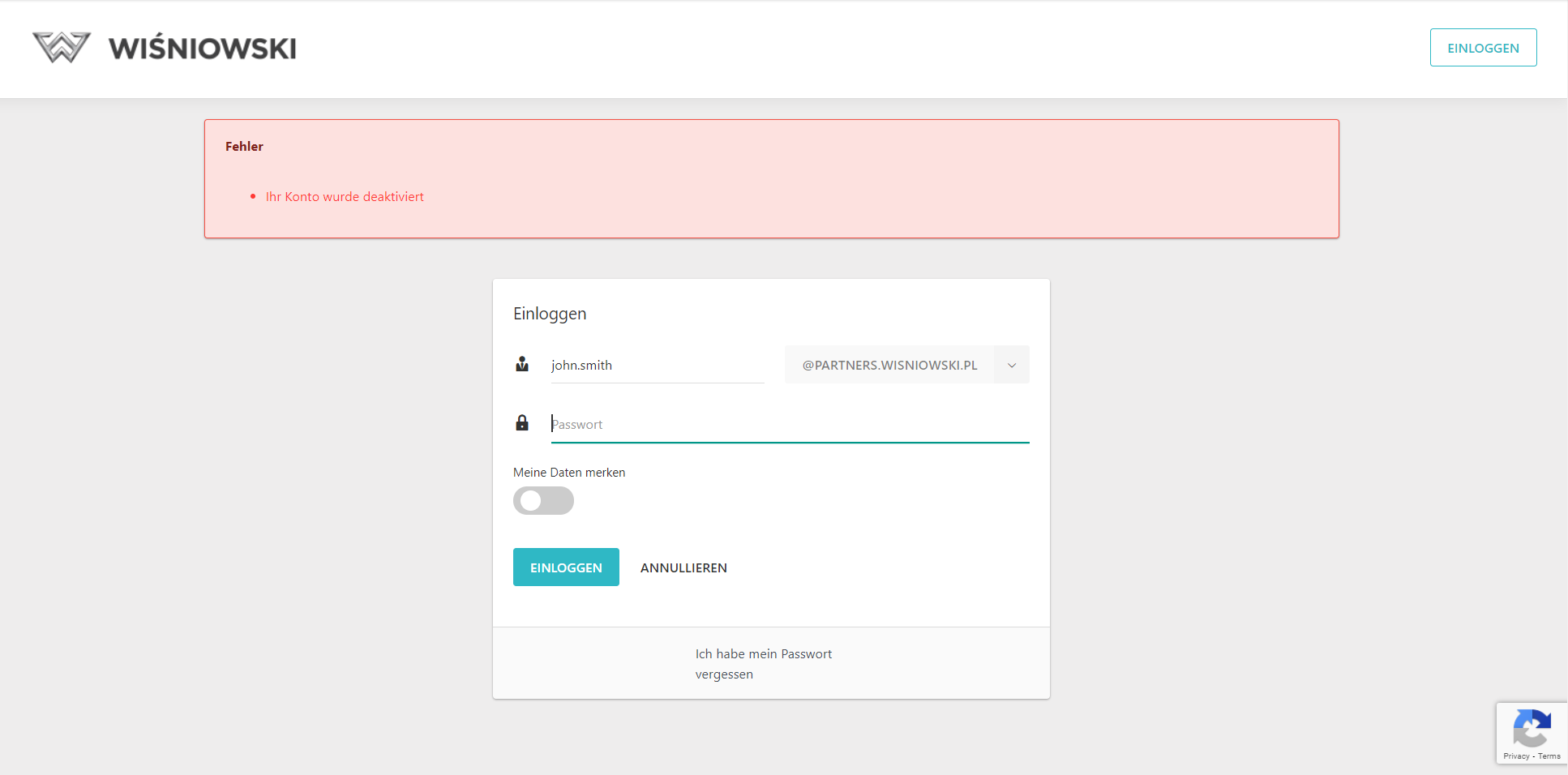 Der blockierte Benutzer erhält nach dem Einloggen solche Information