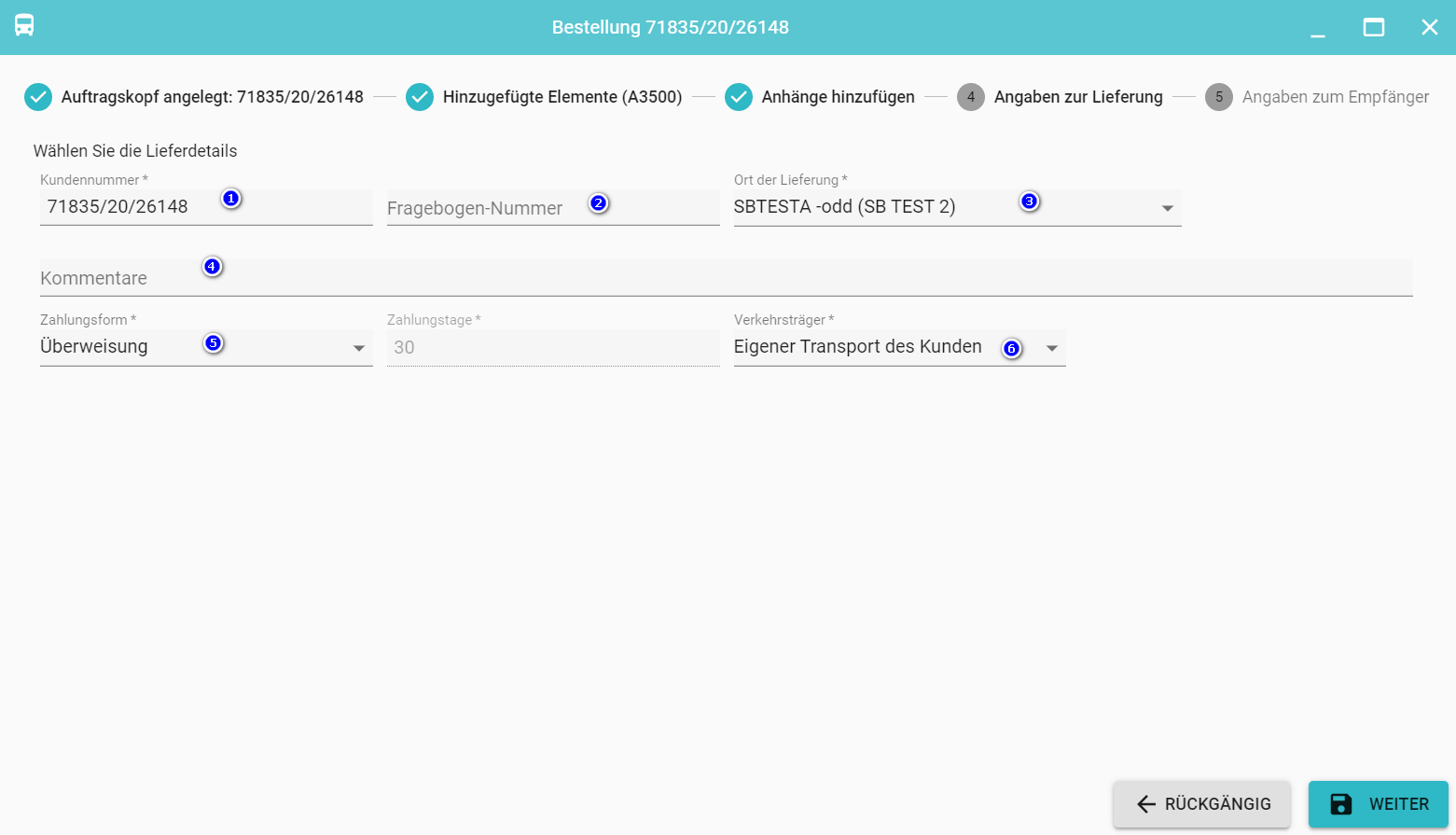 - Kommentare zur Bestellung - allgemeine Kommentare zur Bestellung z.B. "Lieferung KW 10 mit dem Kunden vereinbart"