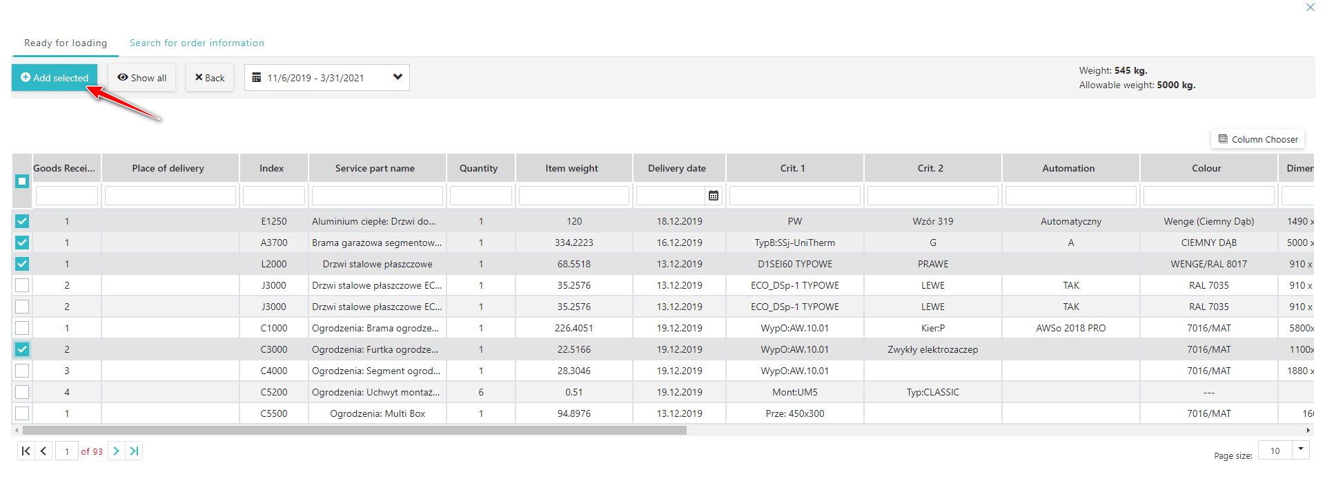3. Please select at least one Item from the list by selecting it in the first column. Then click "Add Selected".