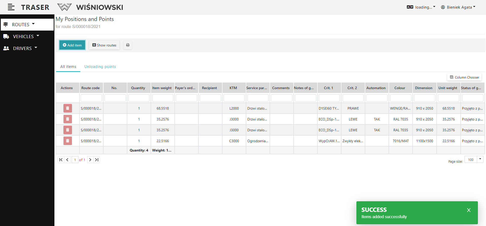 Fig. 4. Adding an Item to the Route.