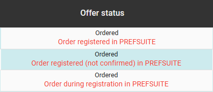 After a short time, the status of the offer will change to Order registered (not confirmed) in PREFSUITE - It means that the order has been processed