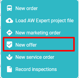 To do this, first create an offer by clicking on and select New Offer from the menu that appears.