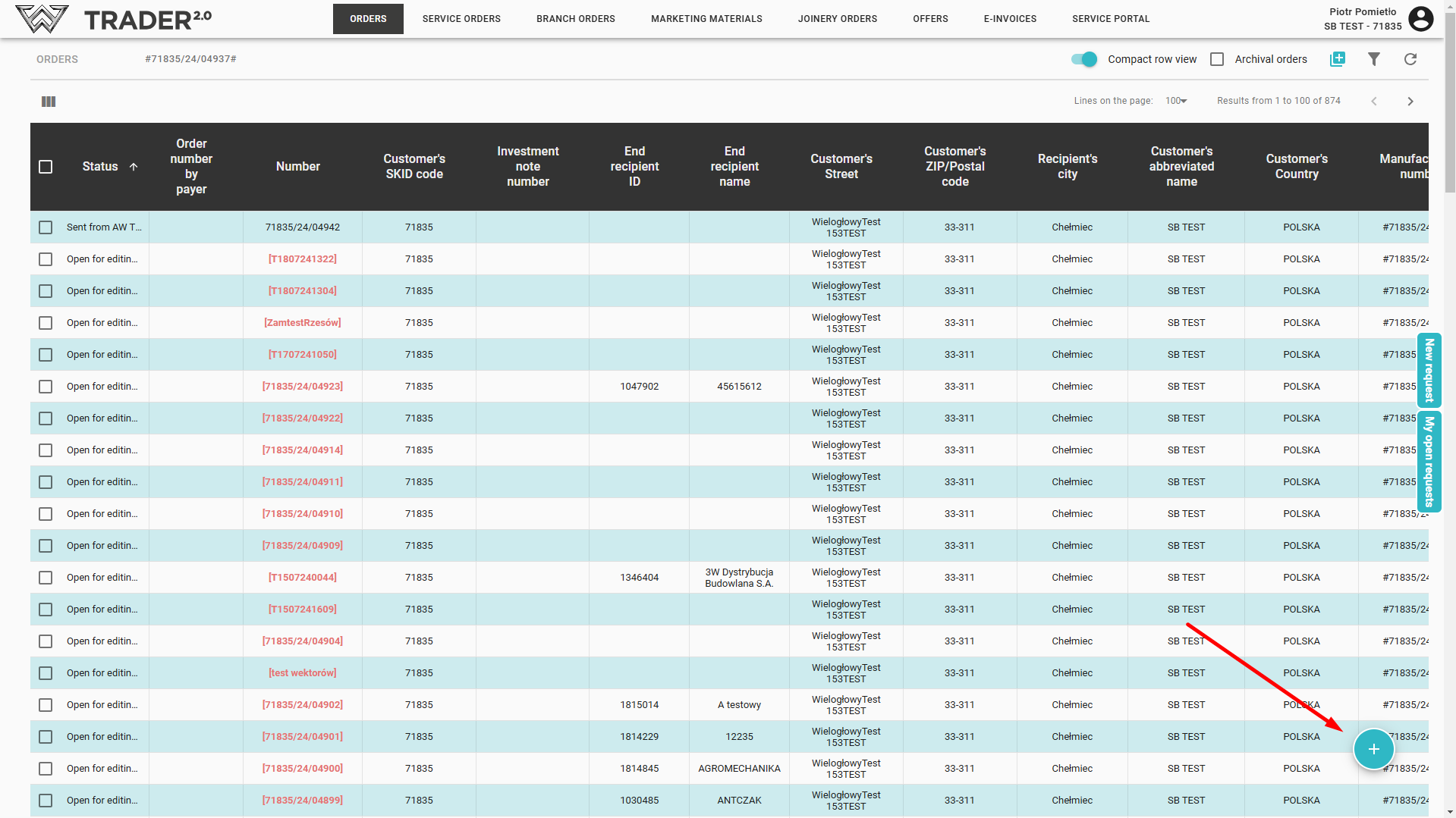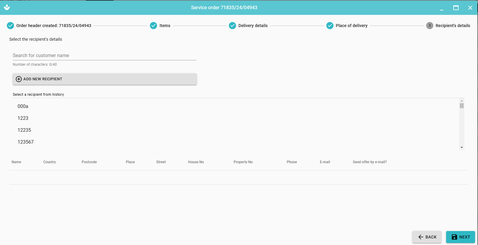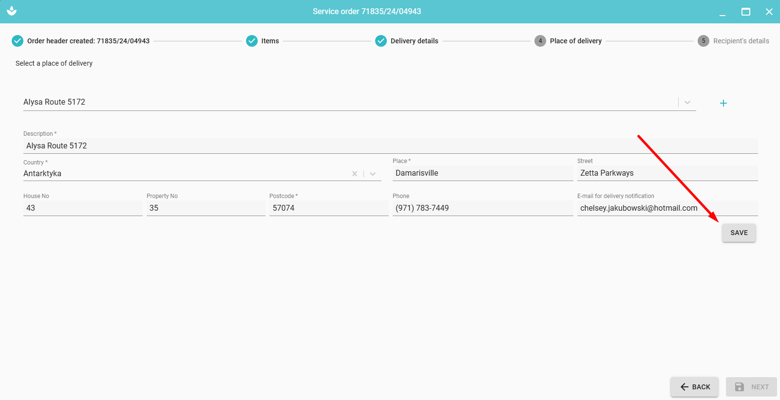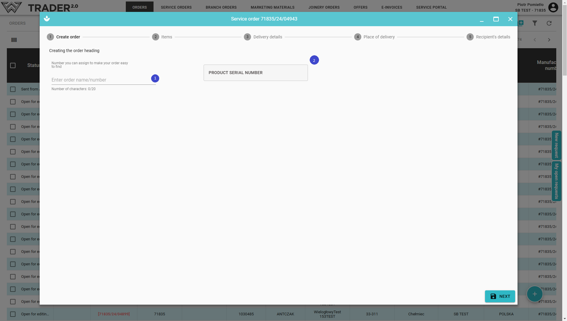 After clicking 'NEXT', the service order is saved and available on the list of orders.