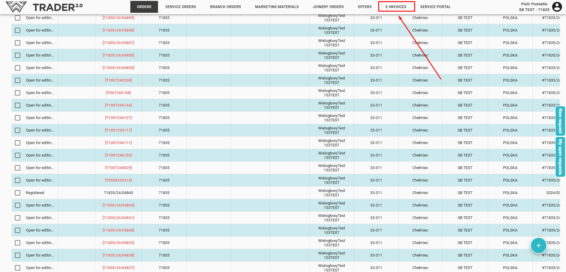 In the E-invoices tab, you can view issued invoices.