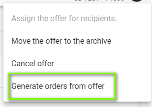 In the window that appears, select the Generate orders from offer option.