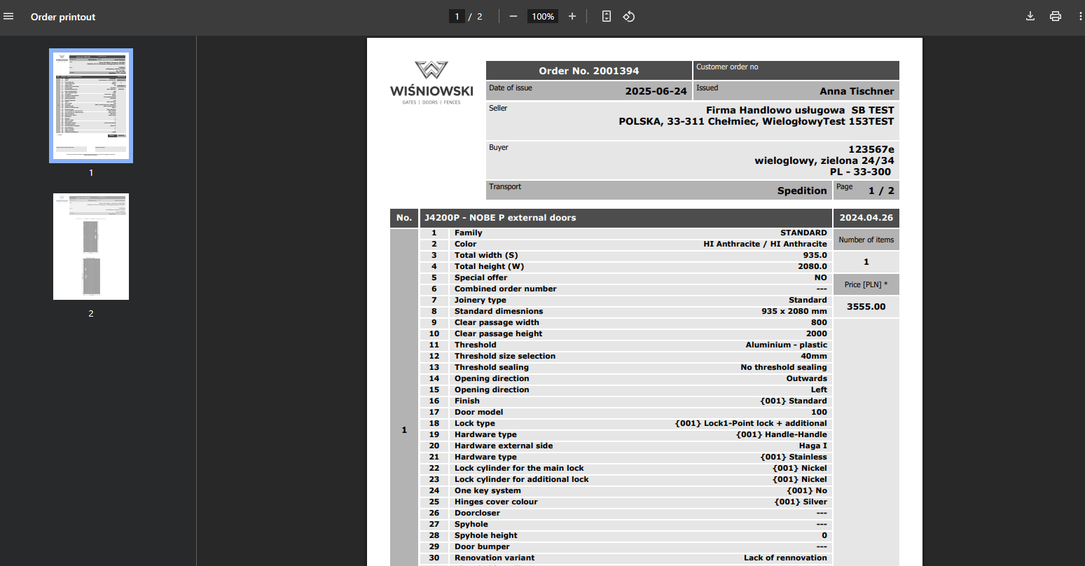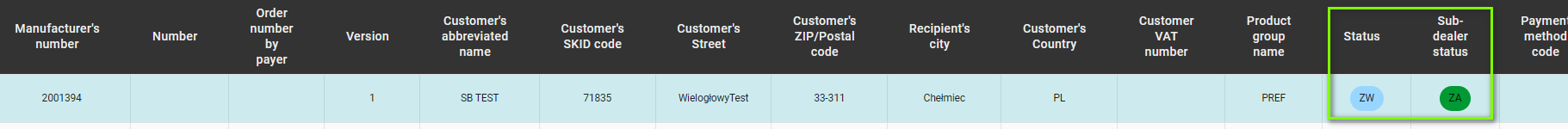 The ZW status in the main view of Joinery orders means that the order has been approved for production, without the possibility of cancellation.
