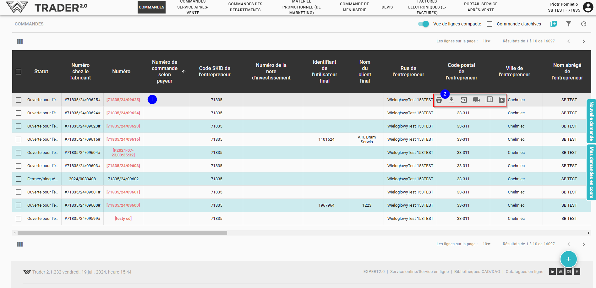 Déplacer votre souris sur la commande que vous souhaitez imprimer (1). L'icône va apparaître (2).