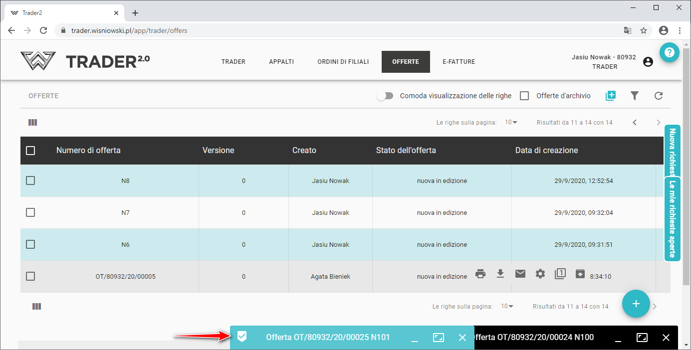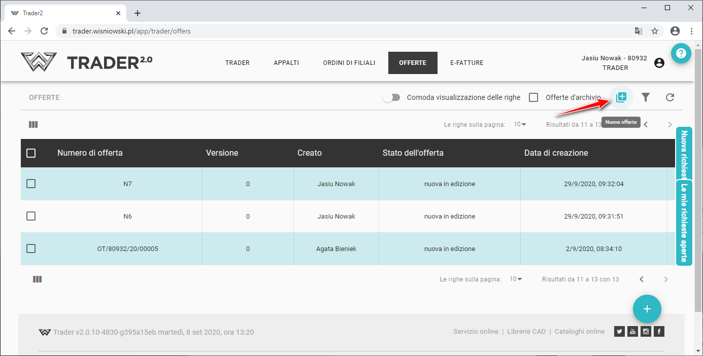 Inoltre è possibile creare una nuova offerta anche utilizzando il pulsante .
