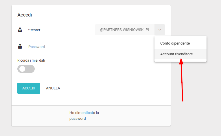 R: Assicurati di aver selezionato l'opzione corretta dall'elenco durante il login.