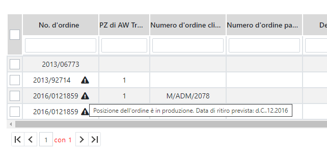 R: 1. Oltre alle Posizioni che si trovano in magazzino, la lista di carico mostra anche quelli per i quali la produzione deve essere terminata entro la data per la quale è stato preparato il percorso. Tali elementi sono evidenziati con un'icona a forma di punto esclamativo.