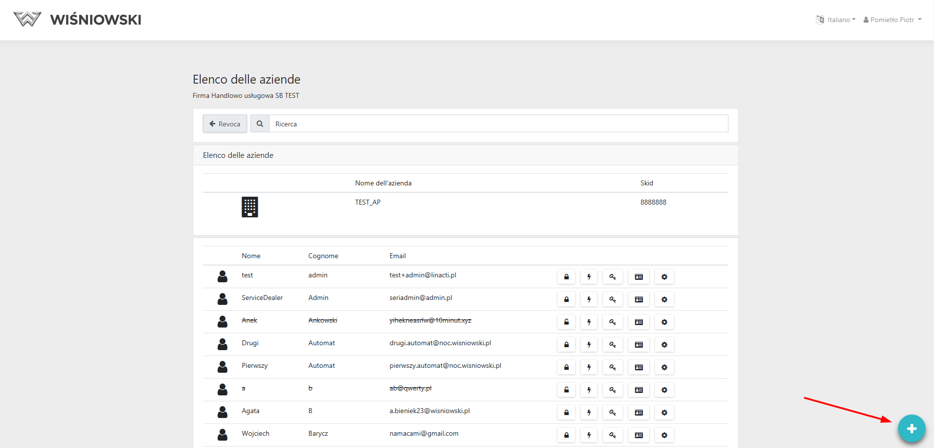 Dopo essere entrati nel pannello di amministrazione, verrà visualizzato un elenco di aziende. È necessario selezionare l'azienda per la quale gestiremo gli utenti e i loro ruoli.
