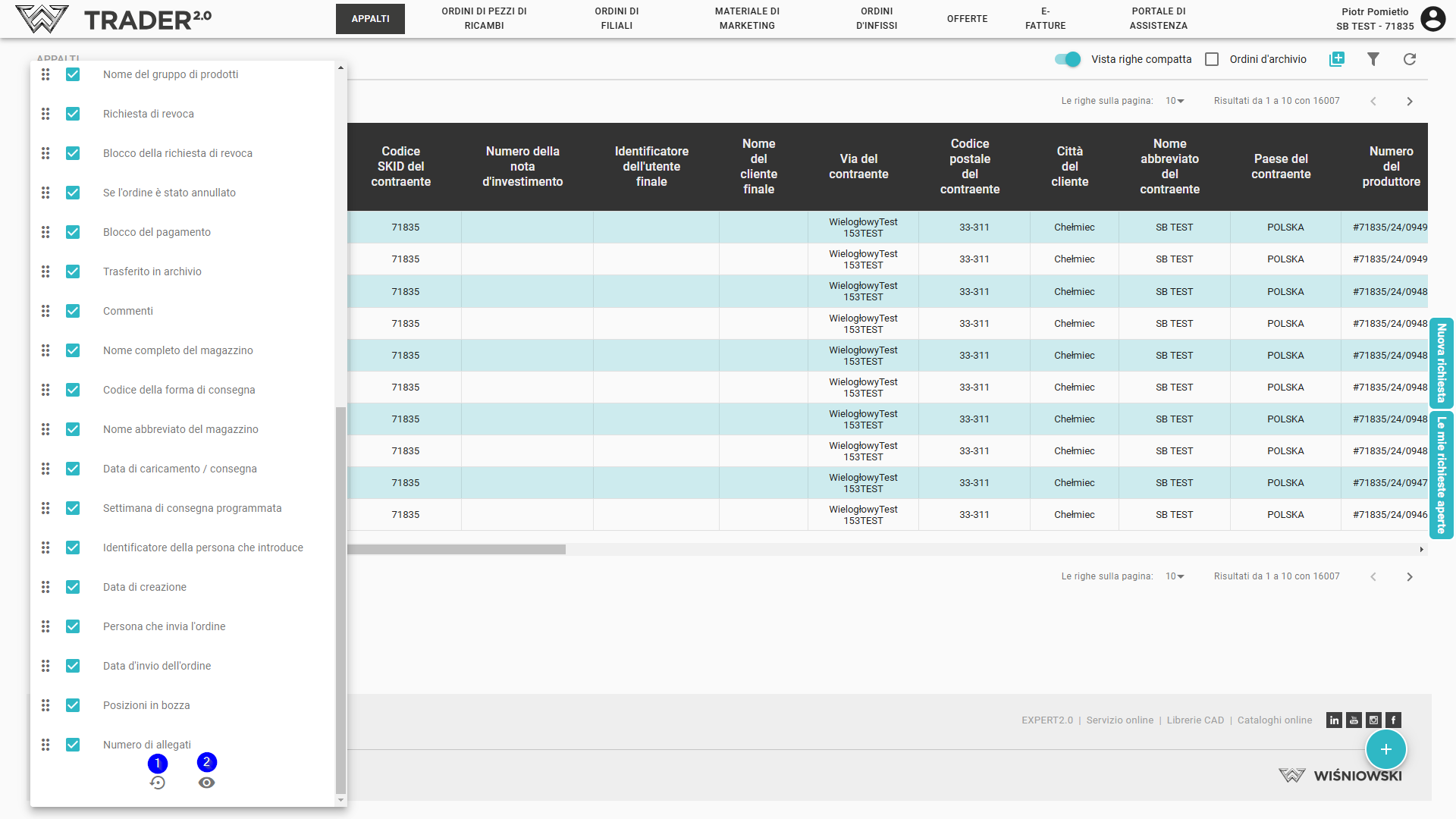 Nelle singole liste possiamo personalizzare la visualizzazione delle colonne, ad esempio nascondere quelle che non vogliamo visualizzare. Per farlo, cliccare sull'icona