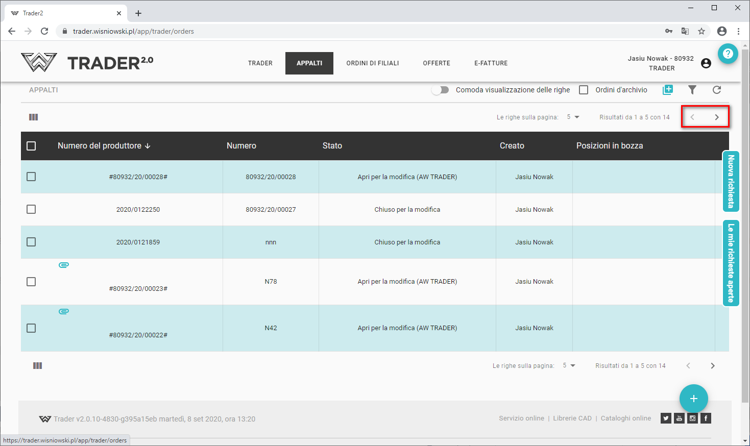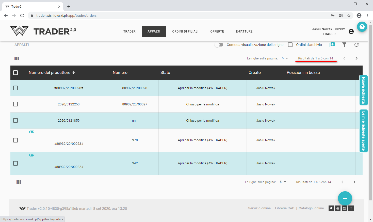 Nei singoli elementi, ad esempio nell'elenco degli ordini, viene visualizzato un numero specifico di record.