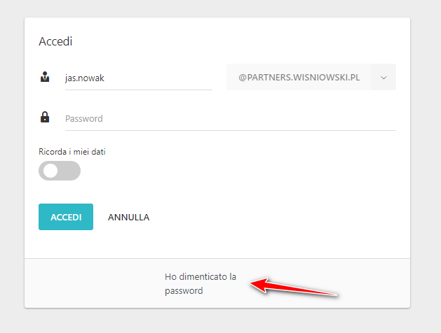 Nel caso in cui l'utente abbia dimenticato la password di accesso, può utilizzare l'opzione di promemoria cliccando su Ho dimenticato la password