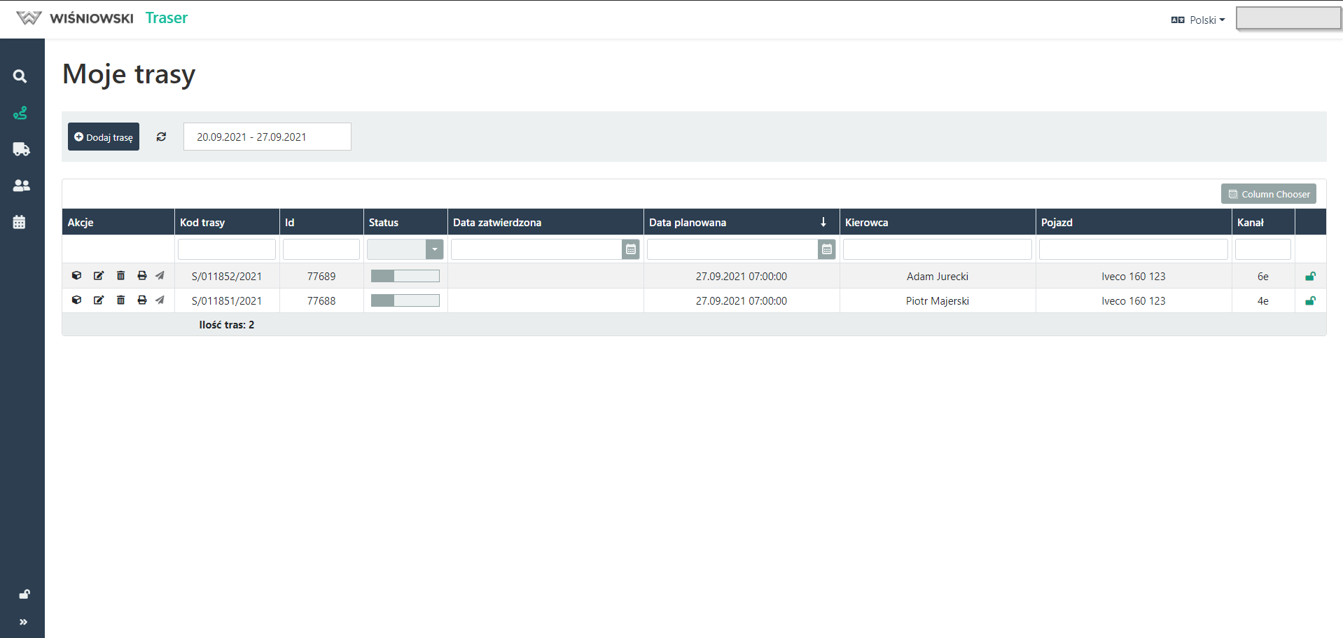 Rys. 2. Ekran powitalny Trasera dla zalogowanego użytkownika.