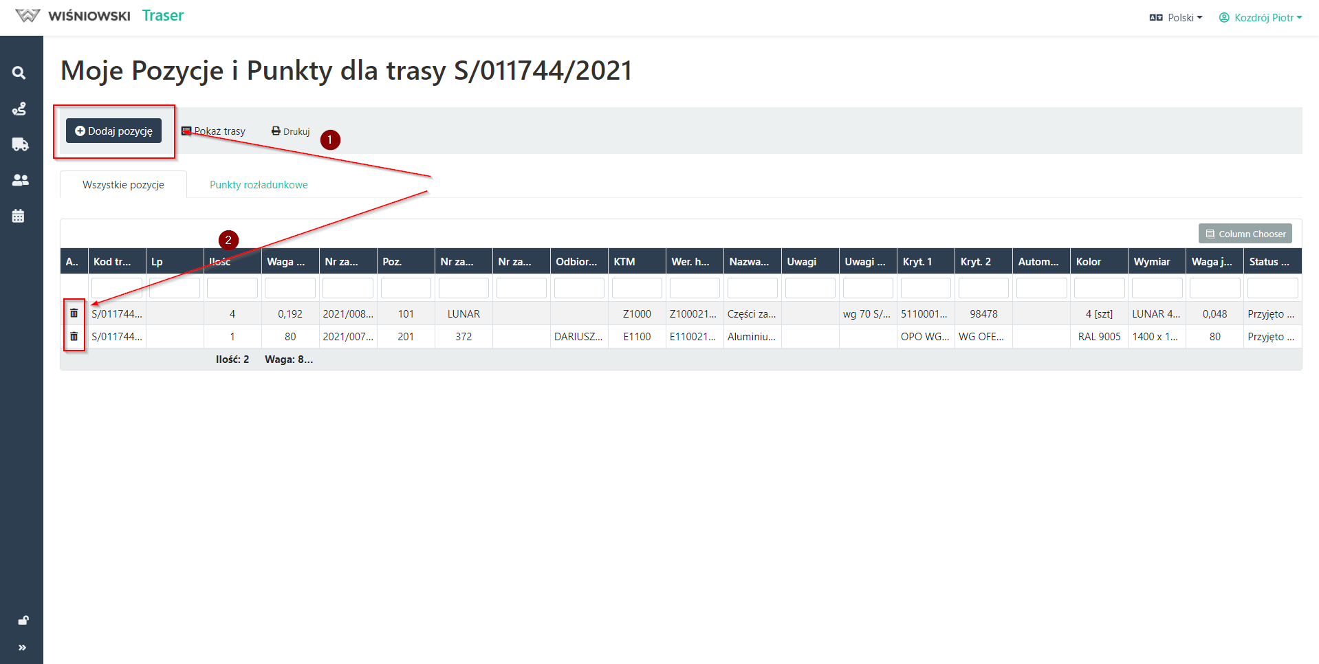 1 - (2) Kliknij przycisk z ikonką kosza, przy wybranej Pozycji (Rys. 3.). Następnie potwierdź, klikając przycisk "USUŃ".