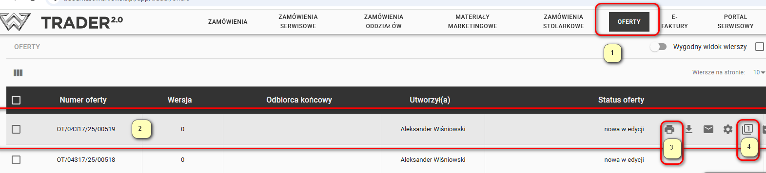 Pozwoli nam to ponownie wrócić do edycji oferty (Należy pamiętać, że wrócić do edycji zamówienia możemy tylko w przypadku gdy nie mamy wygenerowanego zamówienia z oferty ).